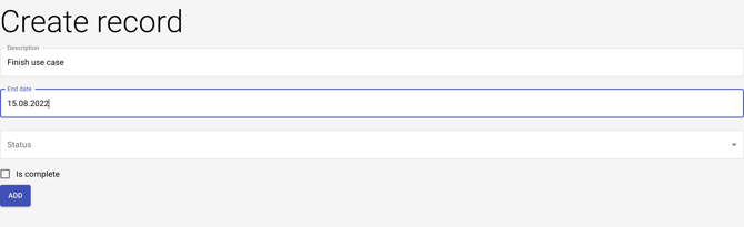 Let's first navigate back to the main page with our tasks (Tasks overview page) and add a button that redirects us to the New task page.