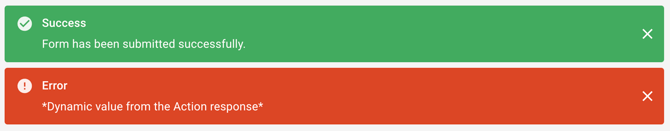 Select the Form component, open the interaction linked to the success alert, and update the interaction that starts with `onActionSuccess` so it matches the following configuration: