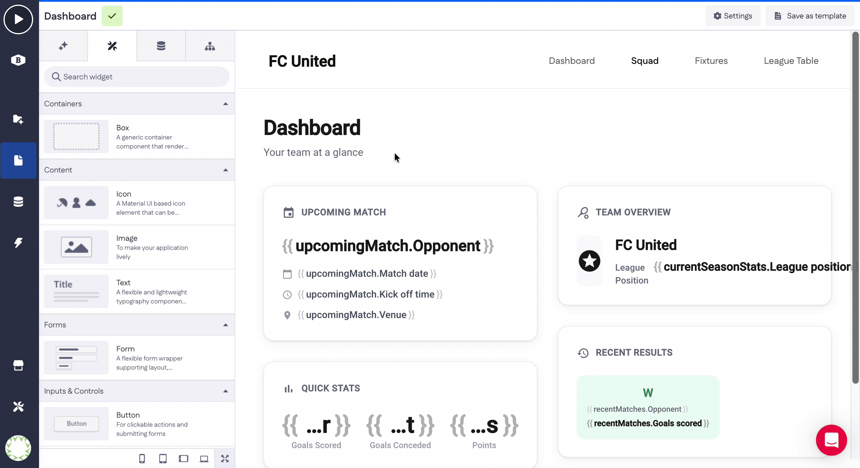 Another way to customize your pages is by using the classic Betty Blocks drag-and-drop method. To add new components from the default set, go to the Components tab.