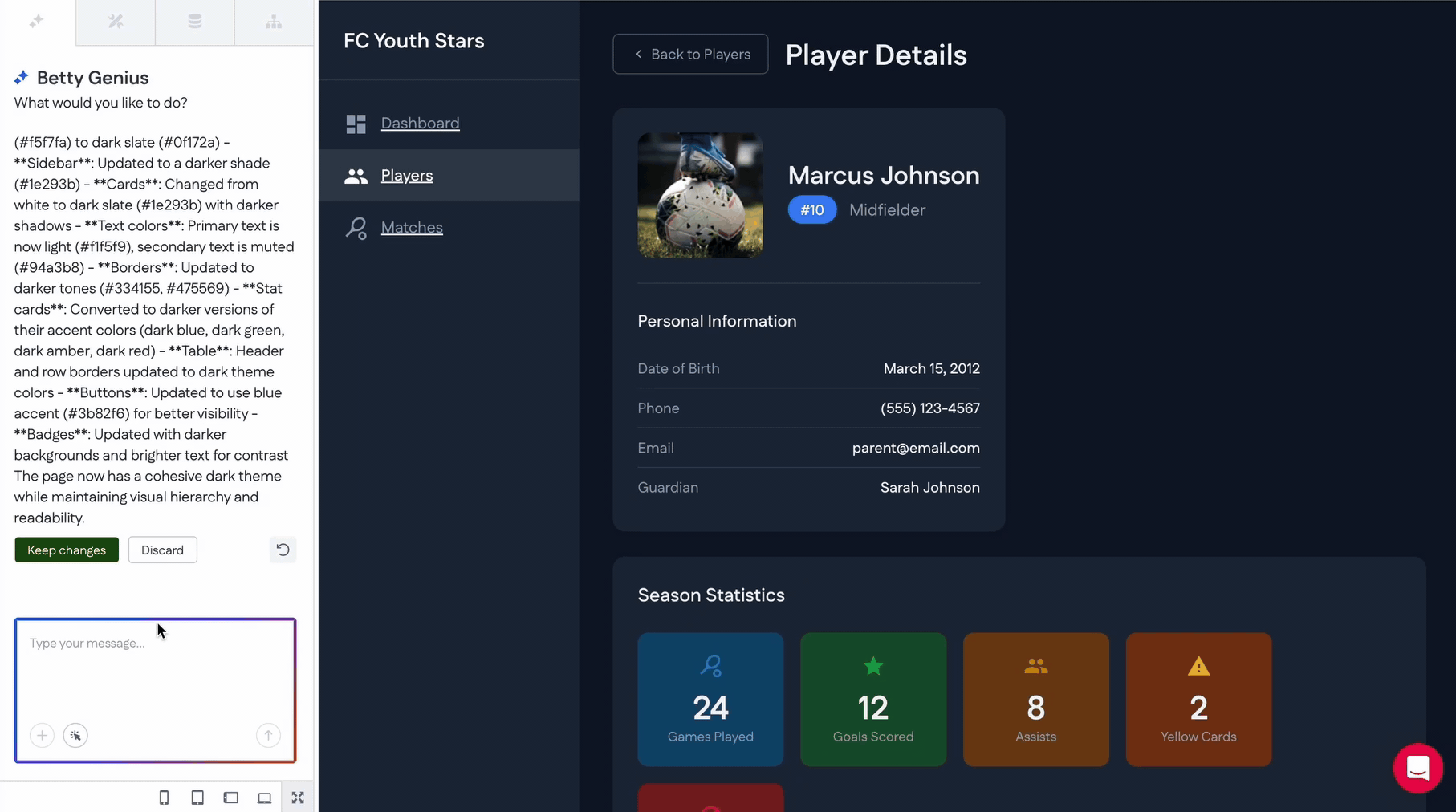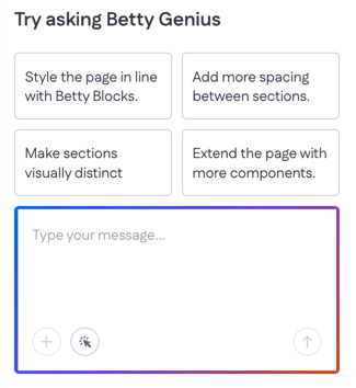 - Interface: This opens a dedicated chat panel where you can chat with Betty Genius about what you would like to be changed on your page