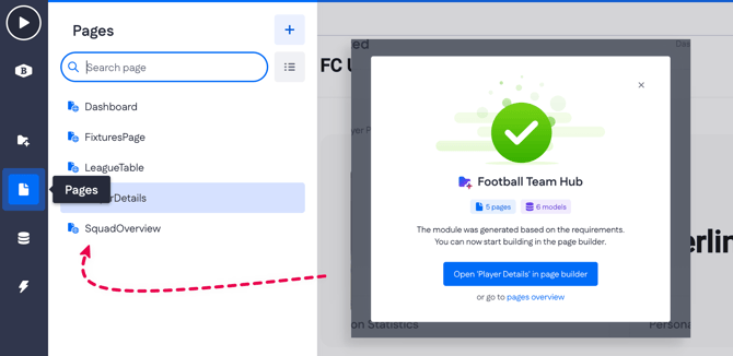 Right after you've generated your application's pages, they will appear in your Pages overview.