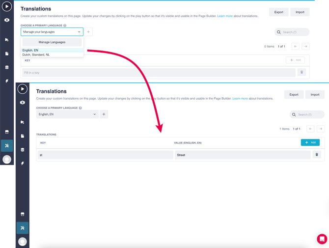 - Example: For Key St, Primary Value Street, enter Straat in the Dutch column.