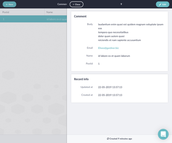 In order to see the created records, you’ll have to direct yourself to the Grid page of the specific model in your Back Office. If the Action was successfully run then your Grid should look something like this: