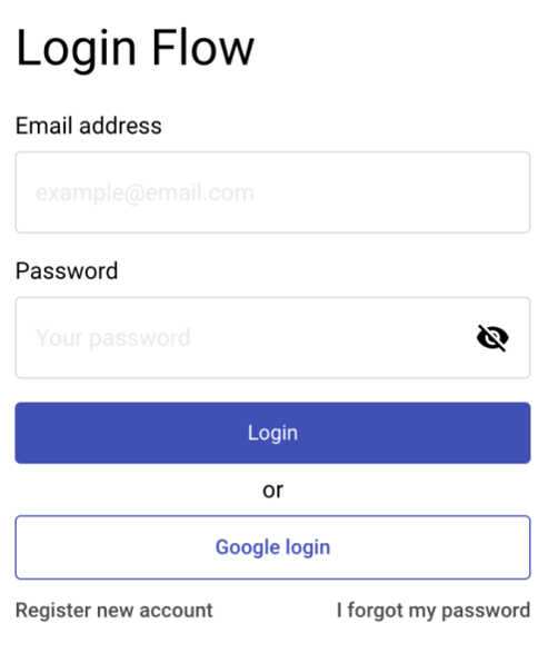 This way to log in is done using the email and password fields on the login page. New users can be created by clicking on the ‘Register new account’ and filling it out.