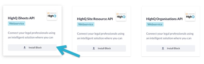 Select the HighQ web service you need. For this example, we will install the iSheets API.