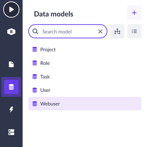 Open the data model section and choose the needed model. In our example, it will be the “Webuser”.