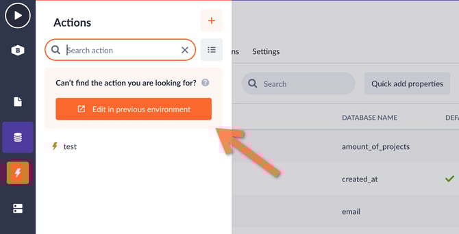 Note: After clicking the ‘Edit in previous environment’ option, you might not get exactly to the actions module. In this case, just click on the actions once again.