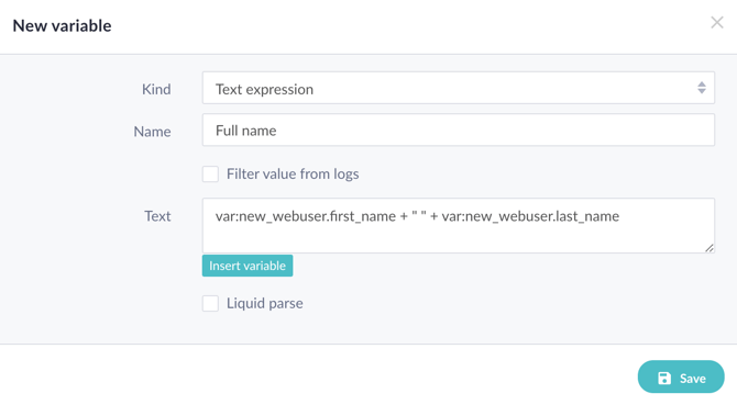 var:new_webuser.first_name + “ “ + var:new_webuser..last_name