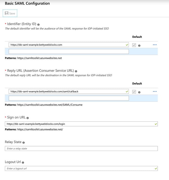 Enter a sign on url where the user can go from you azure portal to sign in to the betty blocks application.