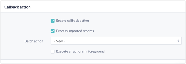After importing a file by using an action, you may want to process all records. This can be done with a callback action. For example, if each imported record needs to be sent by email.