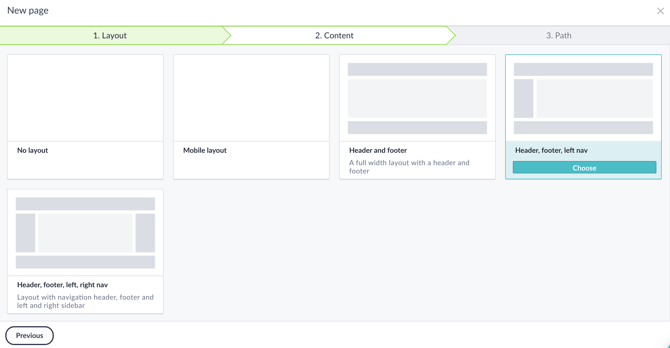 To get a simple but dashing look, choose Header, footer, left nav as Layout.