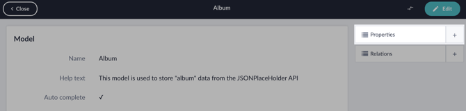 Save the Model and click the + button next to Properties to open a new property form right away.