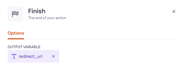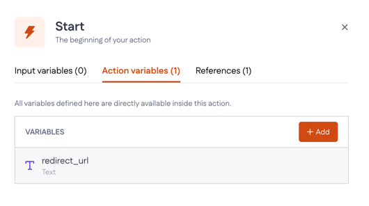 2. In the Start step, create an action variable Text variable having a default value – name it something like redirect_url