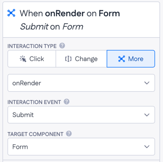 4. Add an onRender trigger on the same Form component and set it to Submit — this makes the form auto-submit as soon as the page loads, so the user won't notice the intermediate step