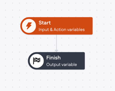 The Start step is used to configure input and/or action variables, while in the Finish step you can configure the name of a variable containing the result of the whole action. More about variables here.