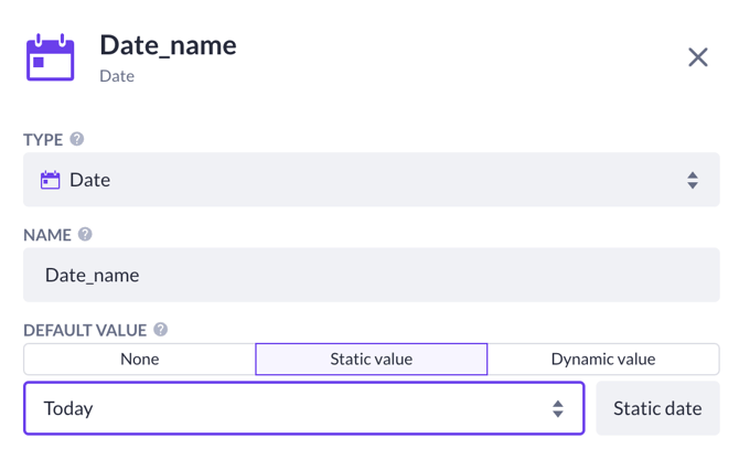 When using a static value for your date time component, you can also select a relative date, this will be saved in the format you have applied.