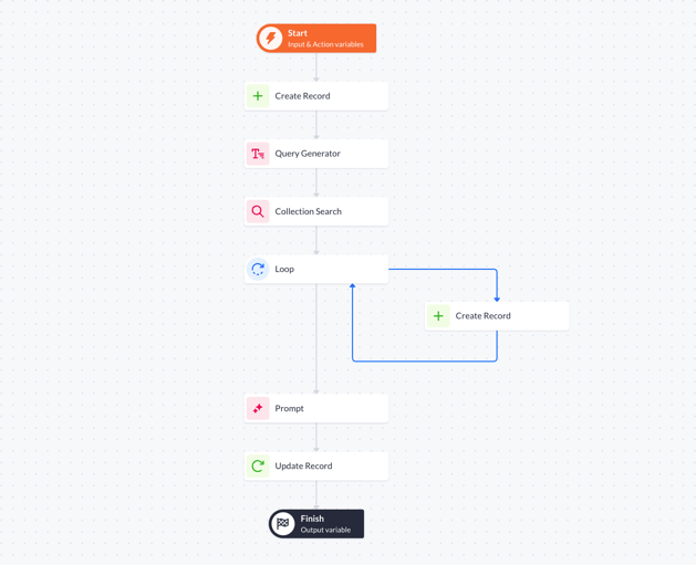 Hopefully, you already know how this case should look from the perspective of the page builder and data model. Now let’s dive into the actions and build several flows to make things work in our application.