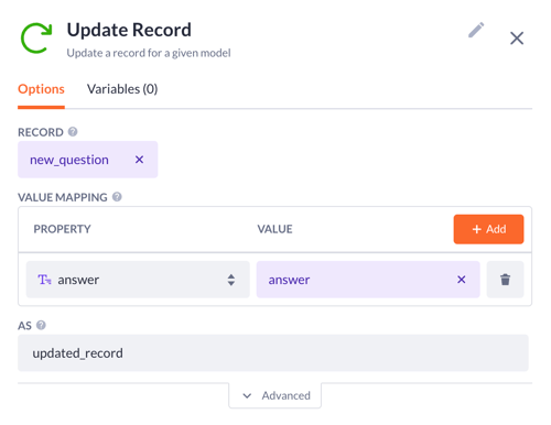 Finally, you have to select the new_question.id as the output variable, and you’re done!