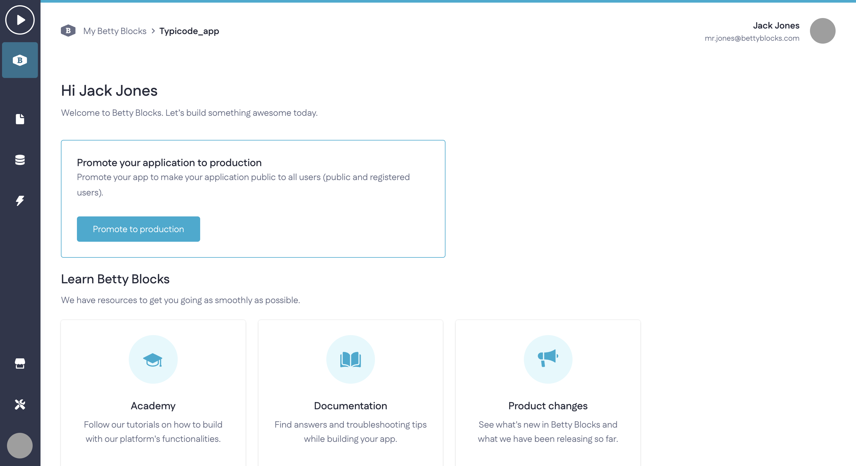 Note: If a builder also needs access to the runtime application, they can sign in using their own Betty Blocks account, provided an account has been created for this purpose. The corresponding Betty Blocks account authentication profile will then handle their login to the runtime application