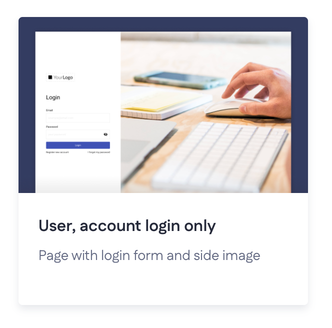 2. Set up a login page. You can use the template 'User, account login only', which includes a login form