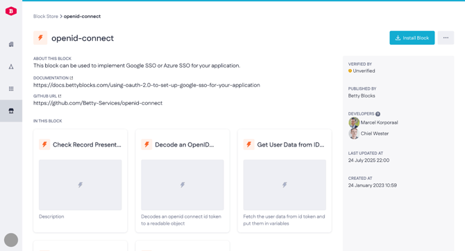 Application-level SSO is functionally identical, but limited to one specific application’s development environment. It’s typically used when external developers or partners need builder access to a single app, without access to My Betty Blocks or other applications.
