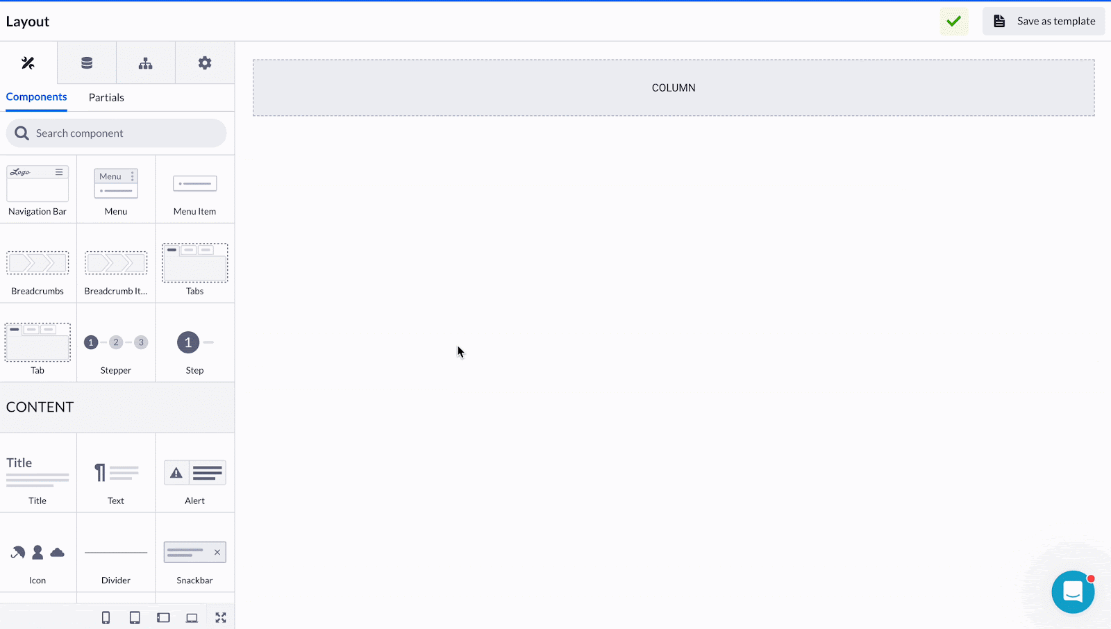 Let’s say we want to build a user purchase flow on our page. Drop the Stepper component onto the prepared Column. Then we’ll add some more Steps on top by either dropping the Step component onto the Stepper or via the Add Step button in the Stepper options.